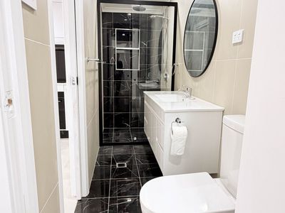 Modern bathroom and enclosed pergola at the rear, perfect for outdoor living