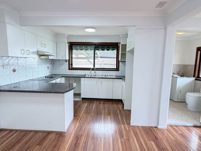 Generous kitchen with separate dining area, opening onto the backyard